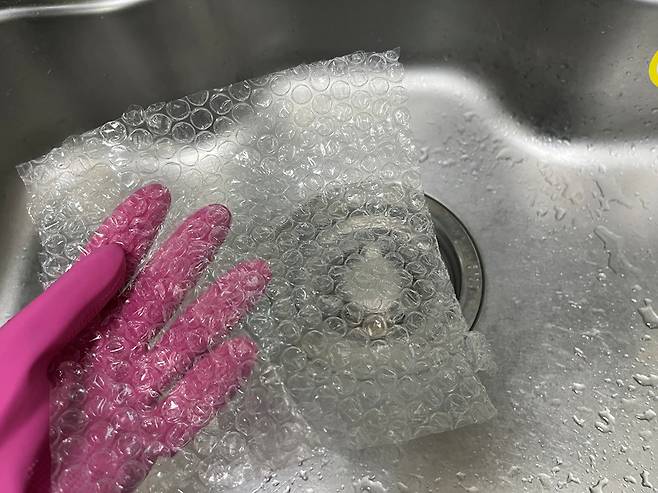 뽁뽁이를 의외로 싱크대에 활용할 수도 있습니다. 바로 싱크대 청소할 때 유용하게 쓸 수 있는데요.