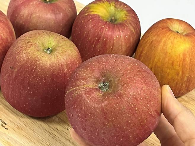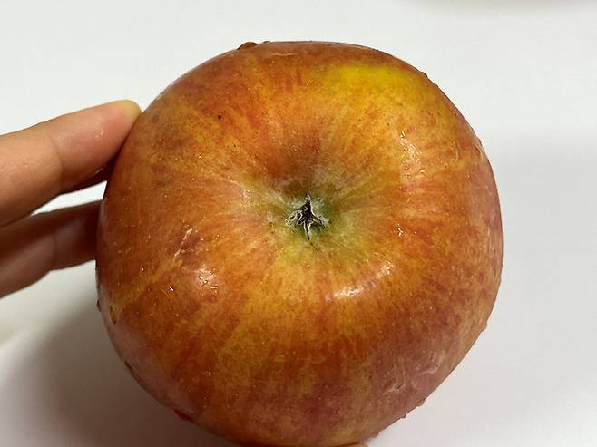 사과를 뒤집었을 때 배꼽 부분을 확인하세요. 사과 배꼽 부분이 푸른빛이 도는 것보다는 노란 색상을 띠는 것이 더 맛있는 사과입니다.