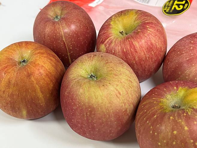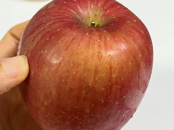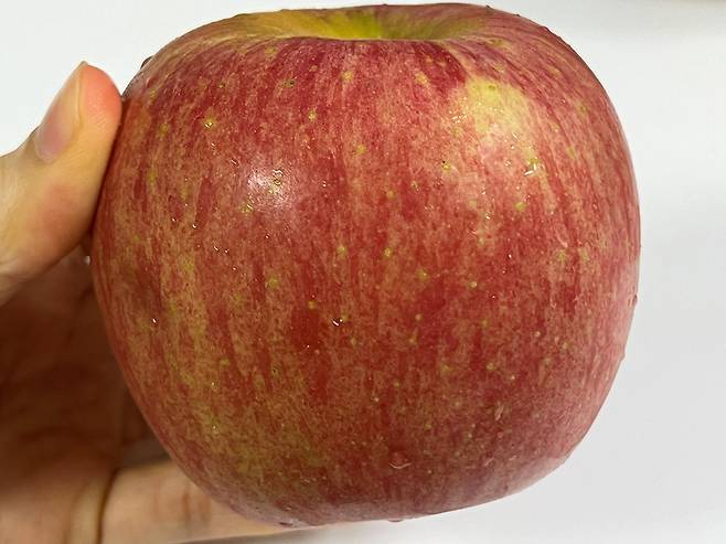 사과 표면에 노란 점이 찍힌 것들이 있습니다. 껍질의 노란 점은 사과가 해를 받을 때 생기는 것으로 자연적으로 숙성이 잘 되었다는 것을 의미합니다.