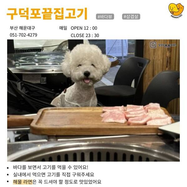 많은 사람들이 반려견과의 좋은 추억들을 쌓기 위해 부산의 예쁜 바다를 감상하러 부산여행을 많이들 가시는데요. 하지만 반려견과의 여행을 계획할 때면 애견동반이 가능한 맛집을 찾기 어려워 많이들 힘들어합니다.