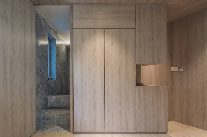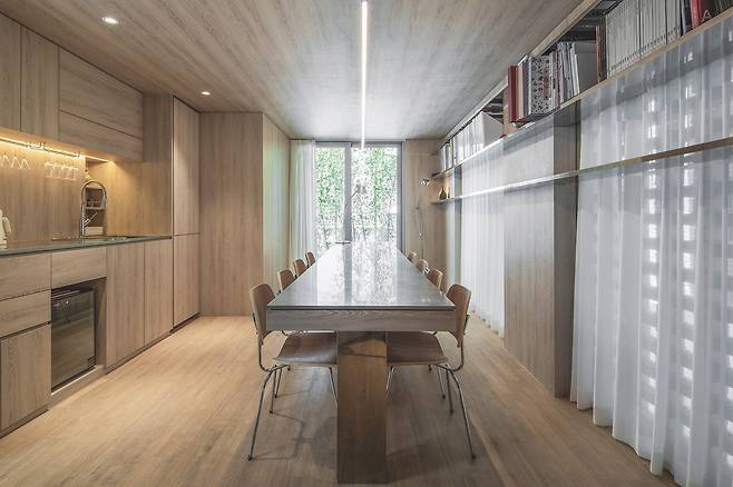또한 이렇다 할 형태를 미리 그리지 않는다고도 덧붙였다. 예를 들어 4인 가족이 사는 곳이라면 무릇 방 몇 개 정도는 있어야 한다든지, 주방은 식재료의 관리를 위해 남향을 피해야 한다든지 등이 그렇다. 4인 가족이어도 다이닝이 필요 없을 수 있고 거실 대신에 서재를 계획할 수도 있는 것이다. 기존의 레이아웃을 과감히 지우고 앞으로 이곳에서 지낼 이용자에 맞춰 공간구성을 재탄생시키는 것이 참된 리모델링이다.
