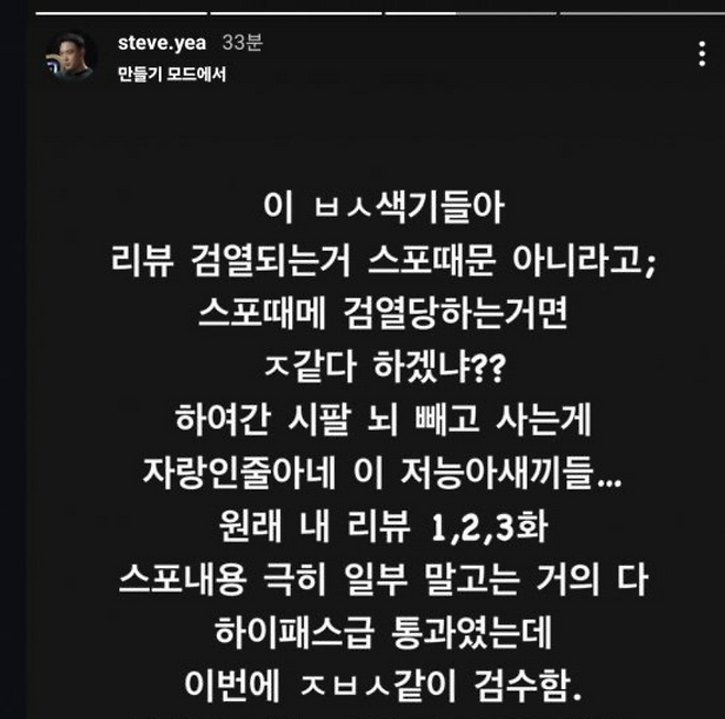 스티브예, 법적 대응 선언… 인스타그램 통해 강력히 대응