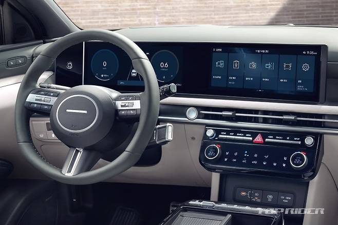 물리 버튼/노브와 정전식 터치 방식이 조합된 인포테인먼트/공조 조작계, 컬럼 타입 전자식 변속 레버 등이 추가됐다. 에어벤트는 운전석에서 조수석까지 얇고 길게 배치됐다. 조수석 대시보드에는 오픈 트레이와 앰비언트 무드램프가 적용돼 안락한 느낌의 라운지가 연출됐다.