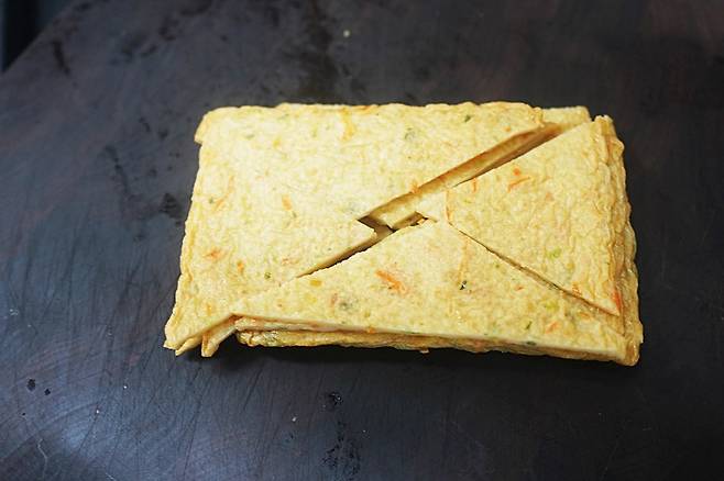 어묵은 4~5장을 준비한 후 삼각으로 잘라서 준비해주세요!