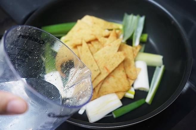 뚜껑을 덮고 한 번 끓여주면 어묵에서 맛이 우러나와 감칠맛이 풍부한 국물이 완성돼요.
