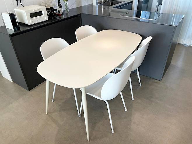 저희 가족이 매일 저녁 함께 이야기를 나누며 식사를 하는 소중한 공간입니다. 식탁과 의자는 심플하면서 관리가 쉽고, 무엇보다 가성비가 좋아서 선택했는데요. 세라믹 상판은 견고하고 잘 닦여 너무 만족스럽습니다.