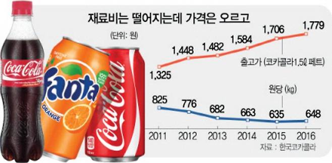 가까운 나라 일본에서 코카콜라 1.5리터는 한화로 약 1,410원인데, 한국은 3,600원에 판매되고 있으니, 거의 두 배 정도가 차이가 나는 셈이죠.