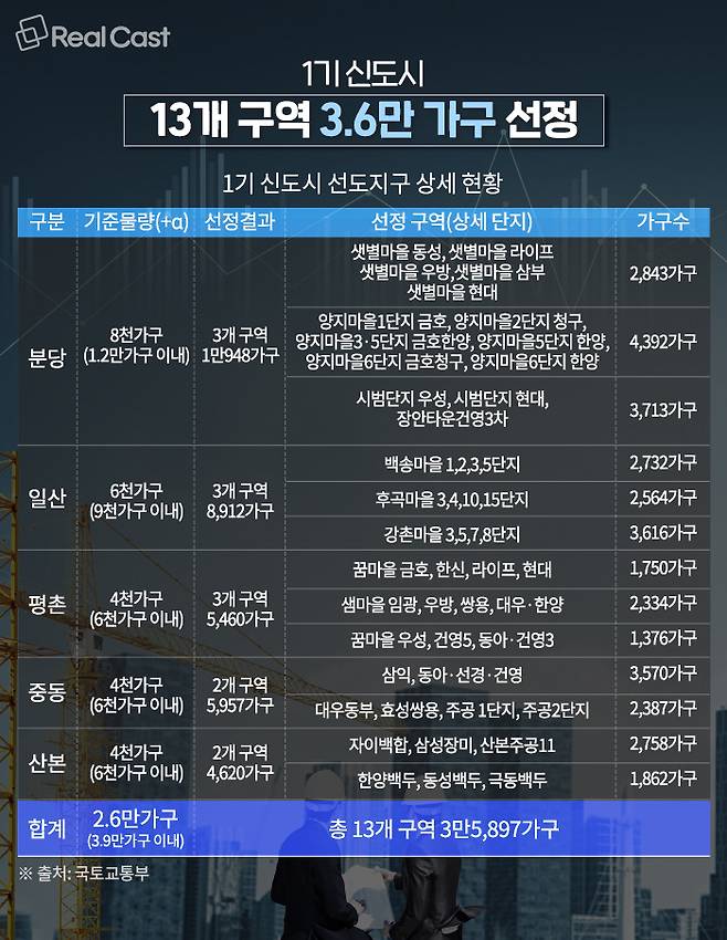 정부는 지난해 11월 1기 신도시 선도지구 13개 구역 3.6만 가구를 선정, 발표했습니다.