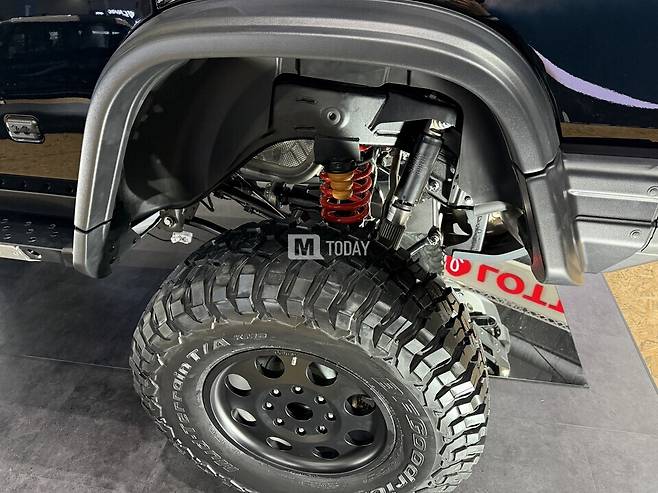 차체는 고강성 래더 프레임 섀시와 바디 온 프레임 구조를 바탕으로 개발됐으며, 포털액슬이 제공하는 탁월한 오프로드 성능과 극한 환경에서도 견딜 수 있는 내구성을 자랑한다. 특히 도하 깊이는 기존 800mm에서 1,050mm로, 최저 지상고는 264mm에서 514mm로 크게 향상돼 어떤 지형에서도 강력한 주행력을 발휘한다.