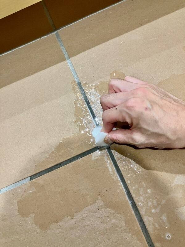 줄눈에 쌓인 먼지와 이물질을 진공청소기나 빗자루로 먼저 제거합니다.