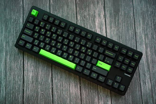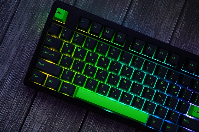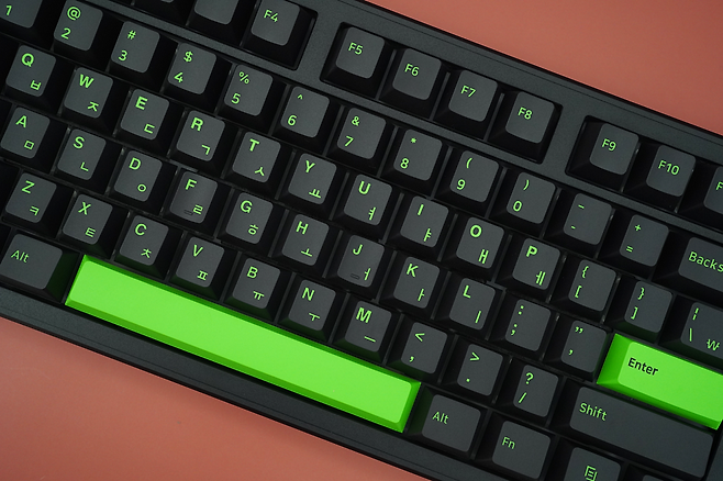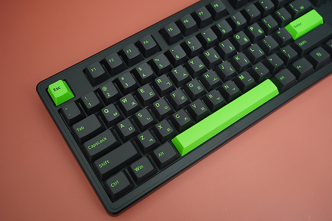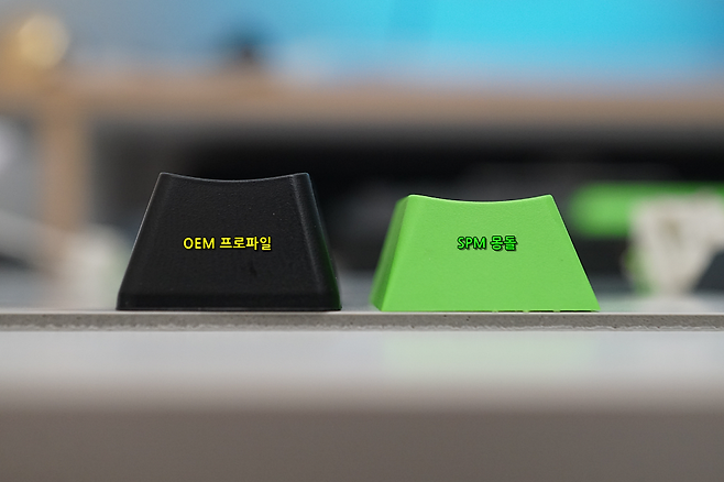 PL87W의 키캡은 채리 프로파일로 OEM 키캡과 비교했을 때 확연히 낮은 모습을 보여줍니다. PBT 이중사출이라 각인이 지워질 우려는 없는 형태입니다. 키캡 두께는 1.3mm 입니다.