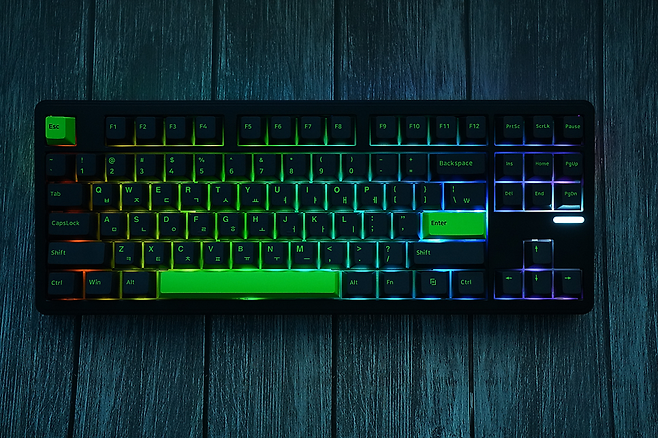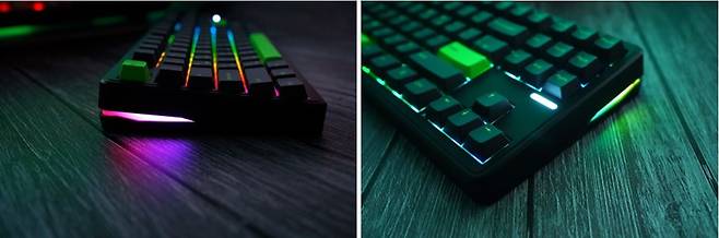 키보드 주변을 따라 LED 발광부가 그려져 있어 시각적으로도 보기 좋은 효과를 나타내어 줍니다.