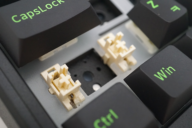 스테빌은 체리식을 사용했으며 윤활이 되어 있어 타건했을 때 철심소리가 거의 나지 않고 흔들림도 없이 안정적입니다.
