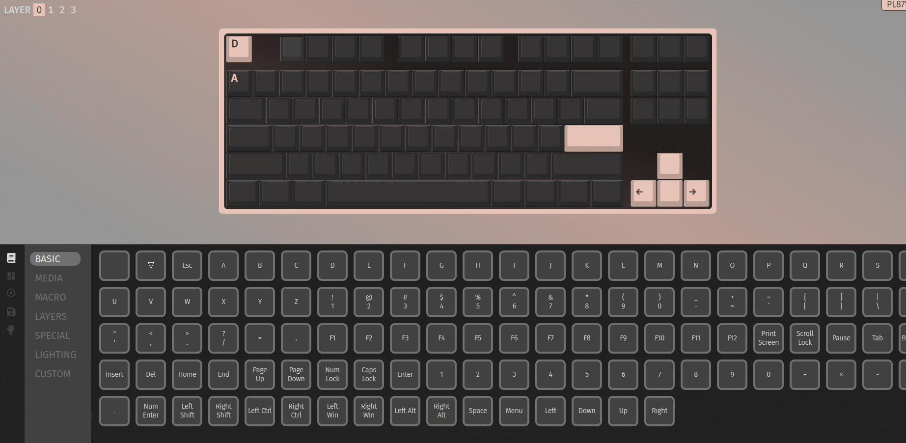 이후 Load 버튼을 눌러 SPM에서 제공한 JSON 파일을 업로드 해주면 PL87W와 같은 배열의 키보드가 나오게 됩니다.