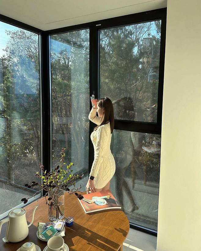 로맨틱한 느낌 물씬 나는 무스탕 롱부츠 코디