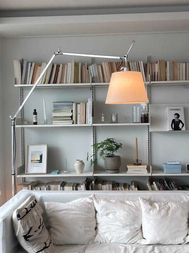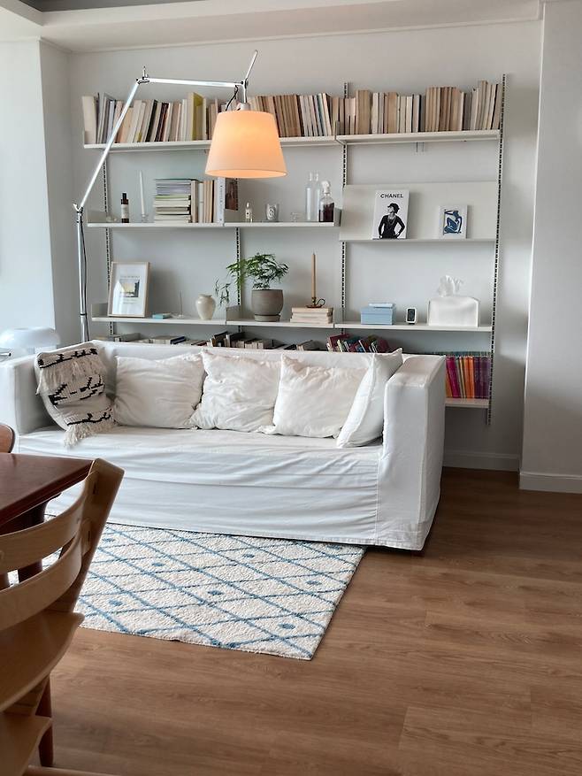 고민 끝에 깔끔한 무드를 주는 화이트 레어로우 시스템으로 선택했어요. 오브제로 변화를 줘서 주기적인 스타일링에 변화를 주는 쪽이 낫겠다 싶었거든요. 결과적으로 굉장히 만족하며 사용하고 있어요.