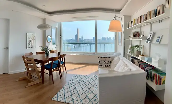 소파에 앉아서도 식탁에 앉아서도 한강뷰를 시원하게 볼 수 있어 가장 좋아하는 장소예요.