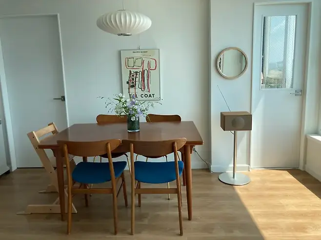 거실 왼쪽 벽면에는 다이닝 테이블을 두었어요.