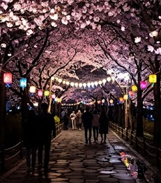 ▶ 조명과 벚꽃이 어우러진 야경 감성