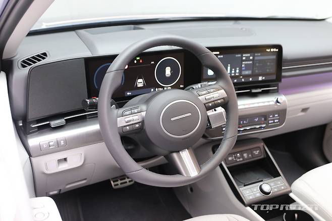 신형 코나는 신차 디자인 초기 단계부터 전기차 모델을 먼저 디자인해 기존 모델의 독특한 캐릭터를 계승하면서도 전기차만의 미래지향적인 이미지가 구현된 것이 특징이다. 파라메트릭 픽셀 요소가 더해진 램프, 파노라믹 디스플레이, 헤드업 디스플레이, 컬럼레버가 적용됐다.
