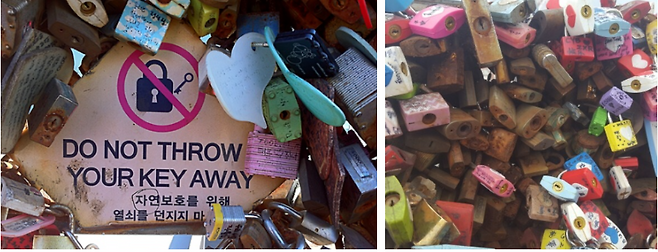 유명 관광지에 연인이나 친구끼리 자물쇠를 걸어 기념하는 것은 전 세계에 퍼진 유행입니다. 우리나라 남산에서도 흔히 볼 수 있는 광경이며 파리, 뉴욕 등 주요 도시들에서 전 세계 관광객이 즐깁니다.