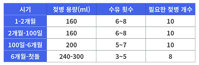 필요한 젖병 수는 10개 내외