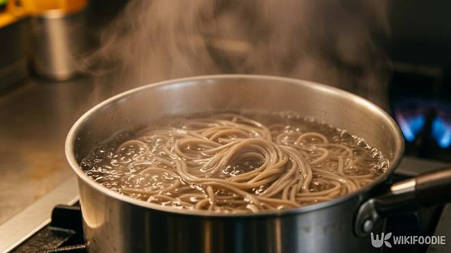 면은 냉동 메밀면을 해동한 뒤 끓는 물에 약 1분간 삶는다. 찬물에 여러 번 헹궈 전분기를 제거하고 체에 밭쳐 물기를 뺀다. 그릇에 메밀면을 담고 고명을 얹은 후 준비된 육수를 부으면 완성이다.