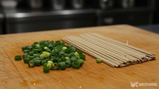 무는 강판에 갈아 면포에 싸서 물기를 짠다. 너무 많이 넣으면 육수가 탁해지므로 한 스푼이면 충분하다. 간 무를 육수에 섞은 뒤 쪽파, 김가루, 와사비를 준비한다.