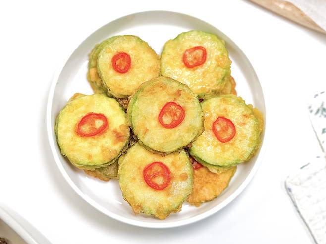 오늘은 간단한 애호박전 만드는 과정과 물러지지 않게 부치는 팁들을 설명해드렸어요.