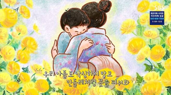"민들레는 사람의 발에 아무리 짓밟혀도 꽃을 피운단다. 우리 아들도 낙심하지 말고 저 민들레처럼 꽃을 피워봐."