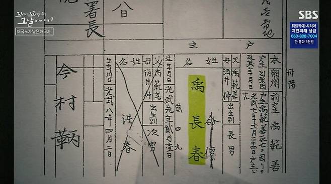 호적에는 스나가 나가하루라는 일본 이름이 아닌 한국 이름이 적혀있어. 바로 '우장춘'. 씨 없는 수박을 만든 것으로 유명한 그 농학박사 우장춘이야.