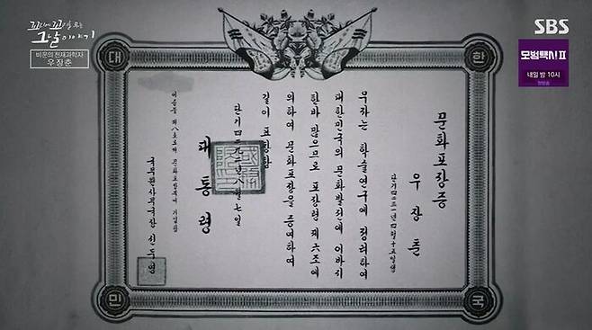 우 박사가 입원한지 두 달이 지난 어느 아침, 농림부로부터 연락이 왔어. 정부에서 문화포장을 수여하기로 했다는 거야. 나라의 권위와 명성을 널리 떨친 사람에게 주는 포장이야. 건국이래 두번째 문화 포장이었어. 첫번째는 애국가를 작곡한 안익태 선생님이야.