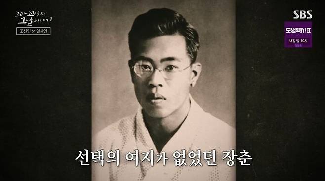 그러던 어느날, 조선의 한 도지사가 조선총독부 관비 유학생들을 위해 강연을 하러 왔어. 신입생 장춘도 참석했어. 가서 연설을 듣는데, 무슨 말인지 하나도 모르겠어. 일본에서 태어나 자란 장춘은 한국말을 할 줄 몰랐거든. 그런데 강연을 듣던 학생들의 얼굴이 벌겋게 달아올라. 그 도지사가 "여러분들은 천황폐하의 막중한 은혜를 입었습니다. 그 은혜에 보답하기 위해 공부에 매진해 천황폐하께 충성을 다하시오"라고 친일 발언을 했거든. 그 말에 분노한 한 학생이 단상에 올라가 도지사의 멱살을 잡았고 강연장은 순식간에 아수라장이 됐어. 그 학생은 와세다 대학의 조선인 유학생 김철수였어.