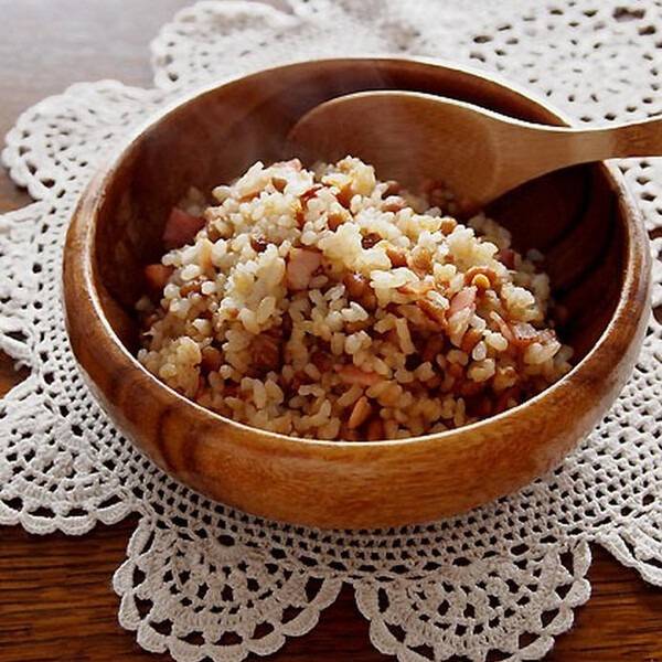 현미를 물에 충분히 불려 약불에서 죽 형태로 끓이기