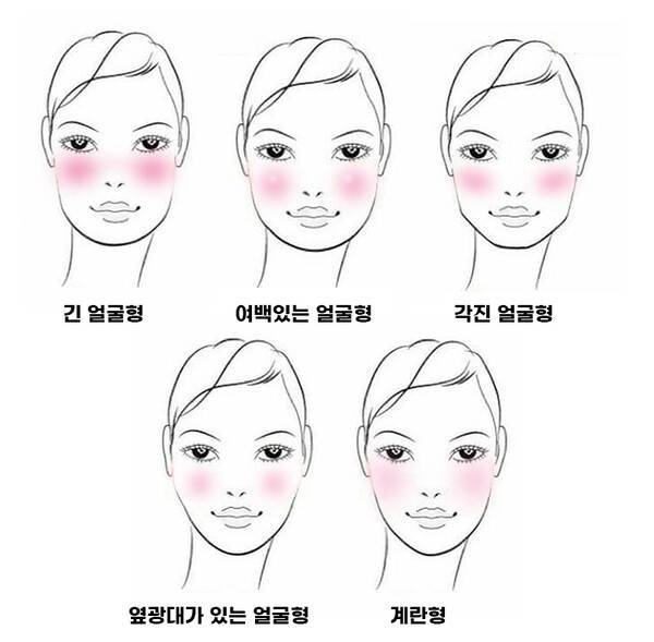오늘은 긴 얼굴형, 각진형, 계란형 등 개인이 가진 다양한 얼굴 타입과 페이스라인 대표적인 5개의 얼굴형에 어울리는 블러셔 바르는 방법을 알아보려고 한다.