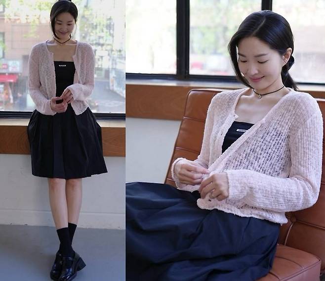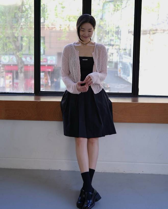 류이서는 블랙 원피스에 핑크 니트 카디건을 매치한 데일리룩을 공개해 ‘순정만화 여주인공’ 같은 아우라를 뽐냈습니다.