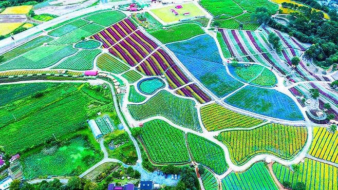 낮에는 꽃밭의 다채로운 색감이 파노라마처럼 펼쳐지고, 밤에는 조명과 미디어아트가 어우러져 전혀 다른 풍경을 만듭니다.