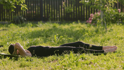 매트에 등을 대고 완전히 누운 상태에서 손을 머리 뒤로 가져갑니다. 왼쪽 무릎을 당기며 상체를 비틀어 일으킵니다. 다시 눕고, 이번엔 오른쪽 무릎을 당기며 상체를 틀어 일으킵니다. 이 교차 동작을 반복합니다.