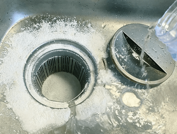 소금만으로는 찌꺼기를 완전히 제거하기 어려운데, 여기에 뜨거운 물이 더해지면 그 효과는 확실히 배가된다. 뜨거운 물은 배수구 안에 굳은 기름이나 비누 찌꺼기를 녹이는 역할을 한다. 기름 성분은 온도에 따라 끈적임 정도가 달라지는데, 고온일수록 유화되면서 물에 잘 섞이게 된다.