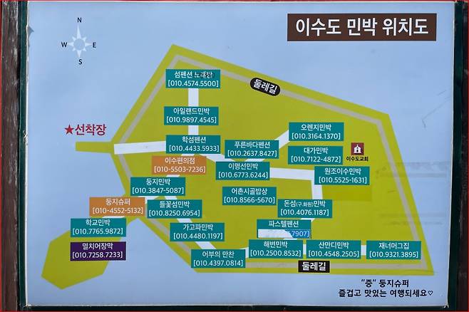 이수도는 시방선착장에서 배를 타고 약 10분이면 도착합니다.