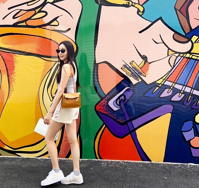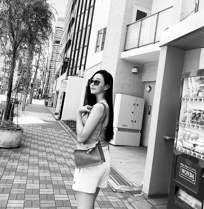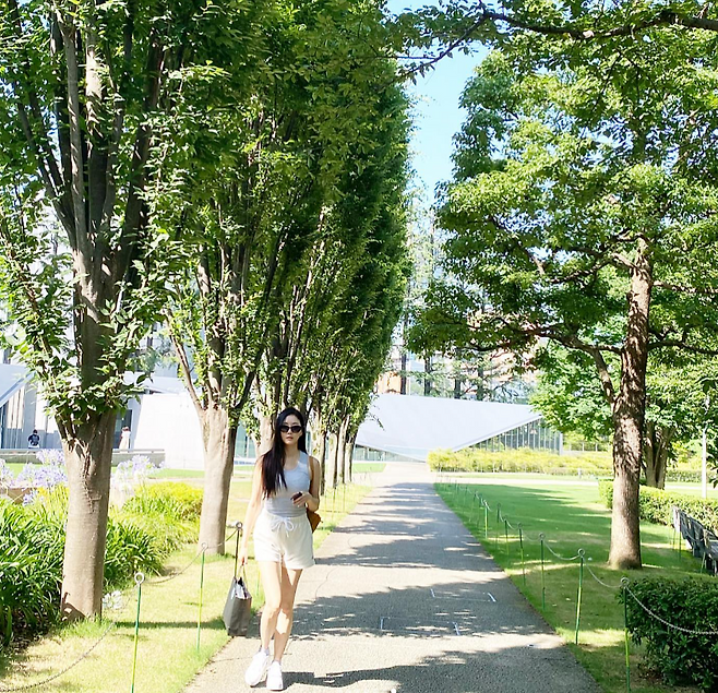 김사랑은 일본 도쿄여행중 편안하면서 활동적인 여행룩을 선보였다.