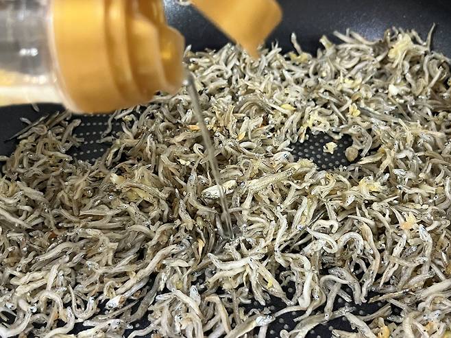 식용유 부족하면 조금 더 추가한 후 멸치를 충분히 볶아 주세요. 최소 3분은 볶아야 비린내도 날아가고, 나중에 냉장고 보관해도 딱딱해지지 않습니다.