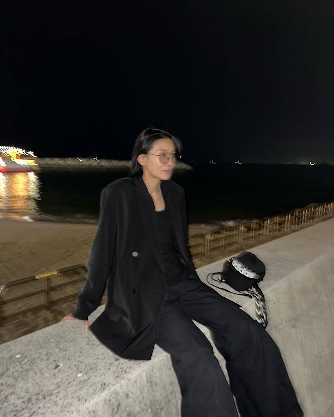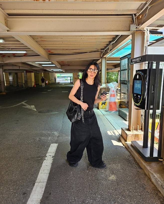 또 다른 사진 속에서는 캐주얼한 블랙 룩을 선보이기도 했습니다.