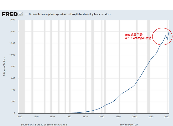 주식투자를 할 때 기업을 고르는 기준이 있으신가요? 어떤 기업이나 종목이든 그렇겠지만, 제가 미국주식에 투자할 때 가장 중요하게 보는 요소는 시중의 돈을 어떤 산업이 가장 많이 흡수하고 있는지 보는 겁니다. 그래서 이를 살피려고 미국의 대표 물가지수를 확인하곤 해요. 물가지수에서 가장 높은 가격지수를 보여주는 항목이 있습니다. 바로 병원·의료 서비스입니다.