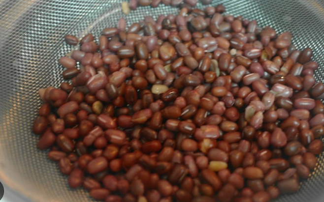 건팥 한 줌을 물 1리터에 넣고 15~20분간 약불로 끓여 우린 후, 건더기는 건지고 맑은 물만 따로 밥물로 사용합니다.