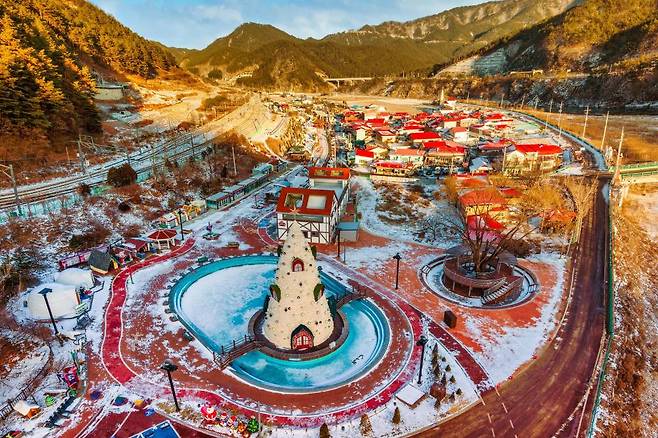 겨울 봉화 가볼 만한 곳의 하이라이트는 단연 분천역 산타마을입니다. 이 마을은 ‘국내에서 가장 작은 크리스마스 마을’로 불리며, 겨울철이면 하얀 눈 속에서 붉은 산타와 트리가 반짝입니다.