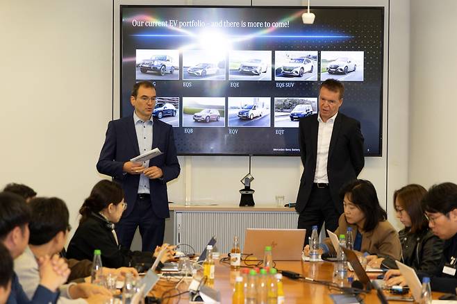 우베 켈러는 1994년 독일 다름슈타트 공과대학교에서 전기전자공학 석사 학위를 취득했다. 이후 2000년 벤츠에 입사, 엔진 및 변속기 제어 시스템과 하이브리드 파워트레인, 자율주행 등 다양한 부서에 몸담았다. 이날 인터뷰 세션에는 우베 켈러와 함께 메르세데스-벤츠의 파워트레인 구매 및 공급사 품질 총괄을 맡고 있는 카르스텐 브레크너 박사(Dr. Carsten Breckner)도 깜짝 방문했다.