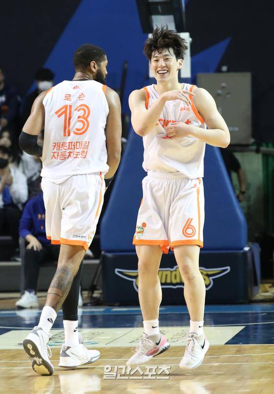 2022-2023 프로농구 서울 삼성과 고양 캐롯의 경기가 13일 오후 서울 잠실실내체육관에서 열렸다. 캐롯 이정현이 경기종료 직전 득점한뒤 기뻐 하고있다.
