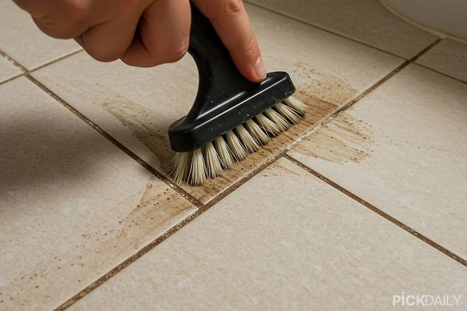 칫솔로 살살 문지른 뒤 물로 헹궈주면 줄눈이 훨씬 깨끗해진다. 완전히 새하얗게 되지는 않더라도 곰팡이 번식을 억제하는 효과가 있다.