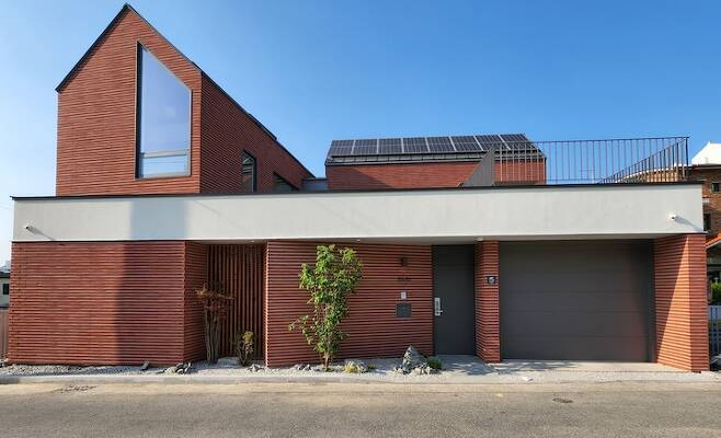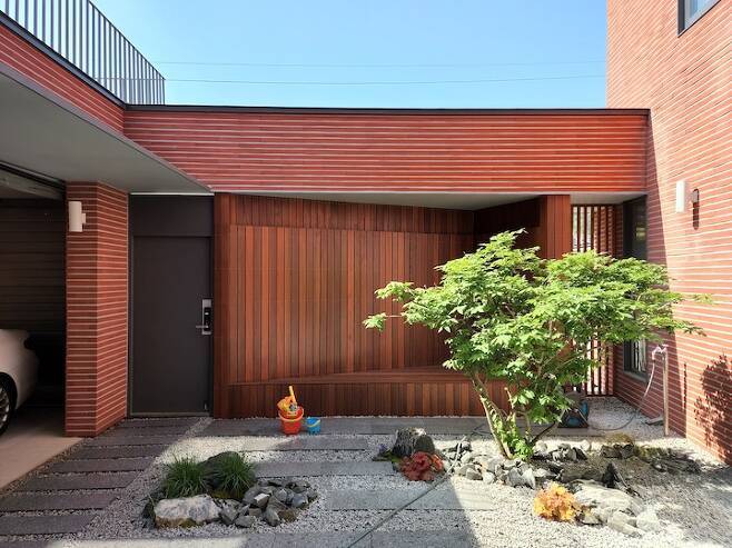 외장재는 롱브릭타일 탱고레드색으로 시공했어요. 처음 남편과 외관 색상에 대해 먼저 이야기를 나누었어요. 그레이 또는 레드 계열로 하자! 라고 생각만 하다가, 우연히 다른 동네에 적벽돌 주택을 보고 저거다! 싶었어요. 남편과 의견이 맞아서 쉽게 결정할 수 있었죠. 지금도 탱고레드색은 진리입니다 :)